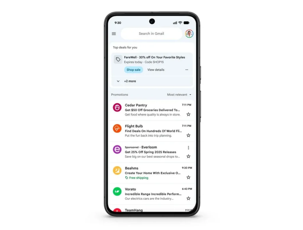 Επιπλέον, εισάγονται και τα λεγόμενα «nudges» – ειδοποιήσεις που αναδεικνύουν επικείμενες εκπτώσεις ή προσφορές που ενδέχεται να ενδιαφέρουν τον χρήστη. Η Google θεωρεί ότι αυτό το στοιχείο θα βοηθήσει ιδιαίτερα όσους θέλουν να είναι σε επαγρύπνηση για ειδικές ευκαιρίες χωρίς να χρειάζεται να ψάχνουν ανάμεσα σε δεκάδες άσχετα emails.